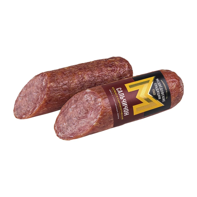 Сырокопченый сальчичон от «Медведовские Традиции» —настоящий деликатес из натуральных ингредиентов порадует вкусом и ароматом.
