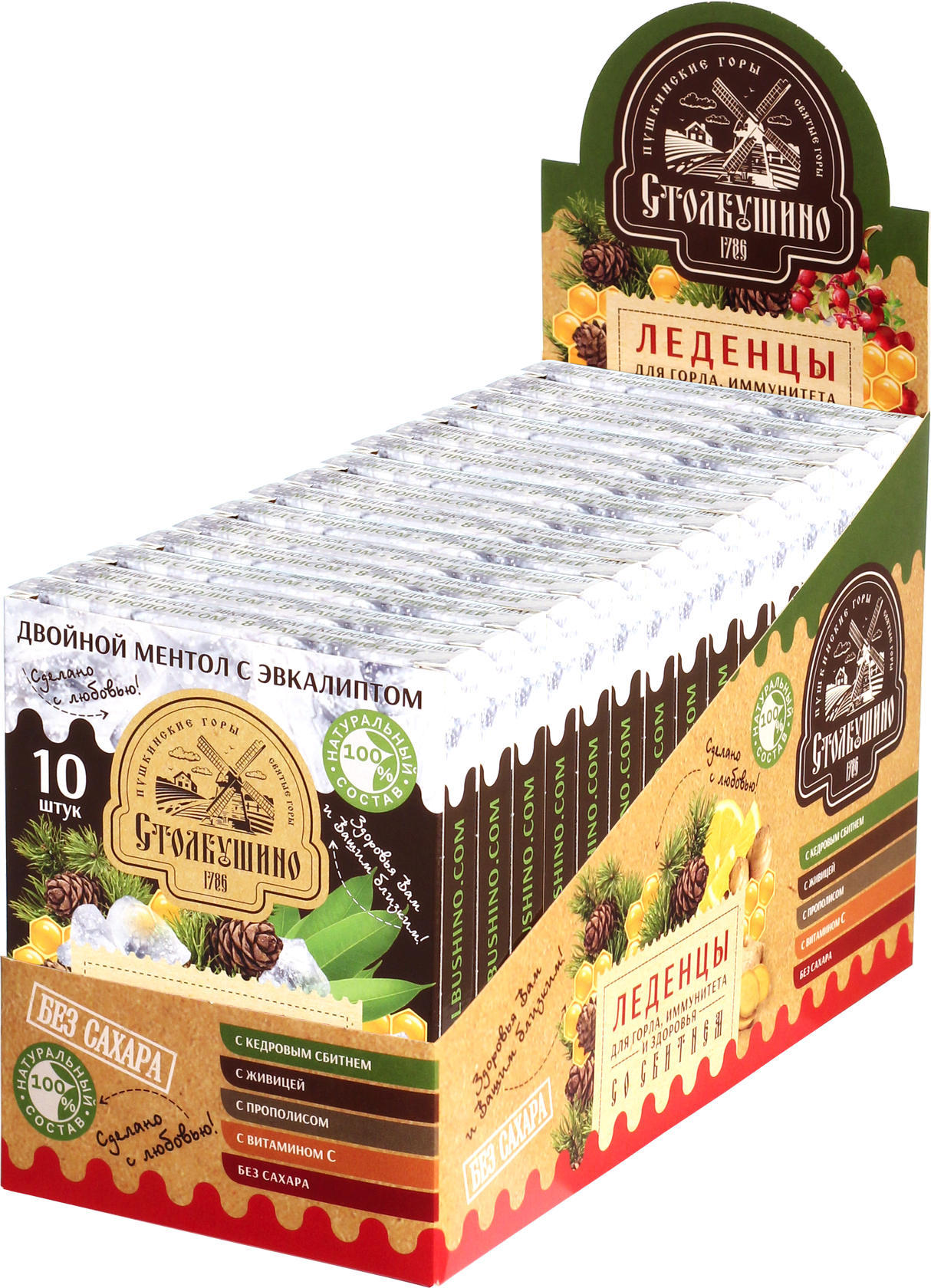 Леденцы-карамель «Двойной ментол, эвкалипт и кедровый сбитень» подарят вам бодрящий заряд энергии и длительное приятное охлаждение благодаря уникальной комбинации вкусов.